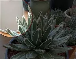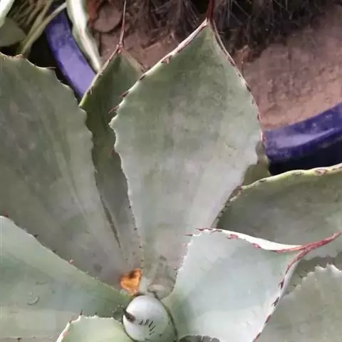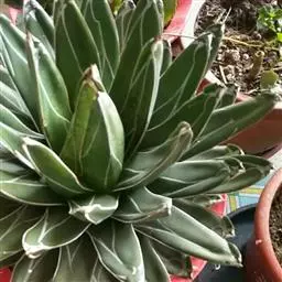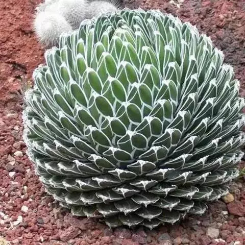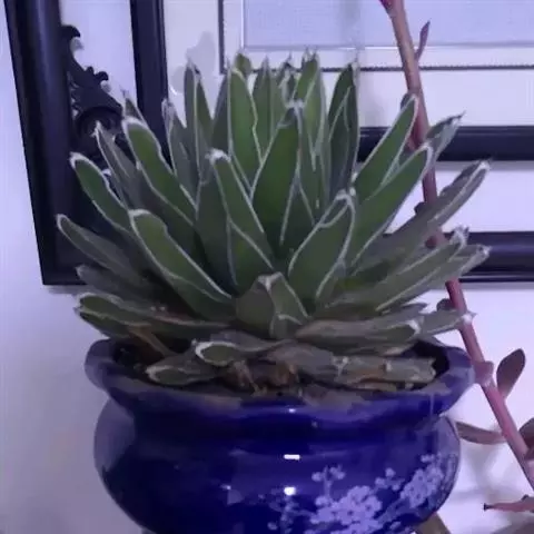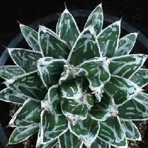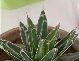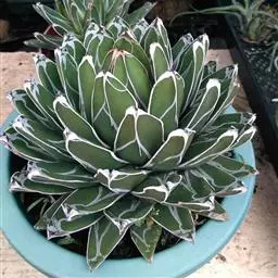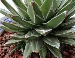 皇后龙舌兰是天门冬科、龙舌兰属多年生草本多浆植物。无主茎,叶丛生,莲座状,株幅40厘米。叶较多,…