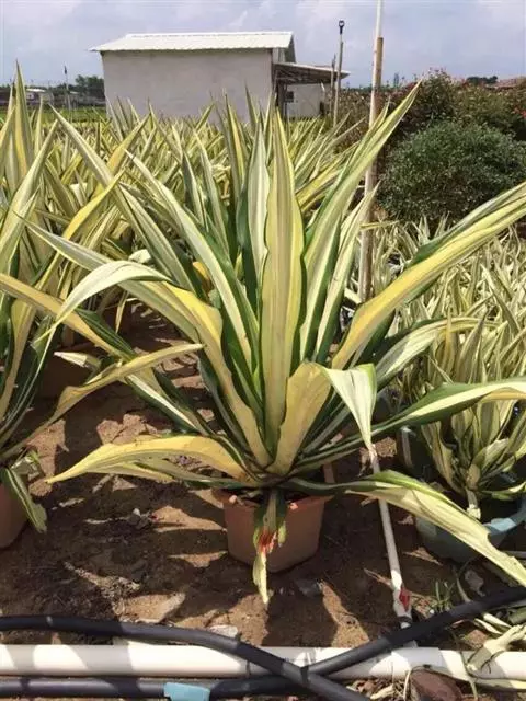 万年麻是万年兰属植物,株高可达1m,茎不明显。叶呈放射状生长,剑形,叶缘有刺,波状弯曲。斑叶品种无…
