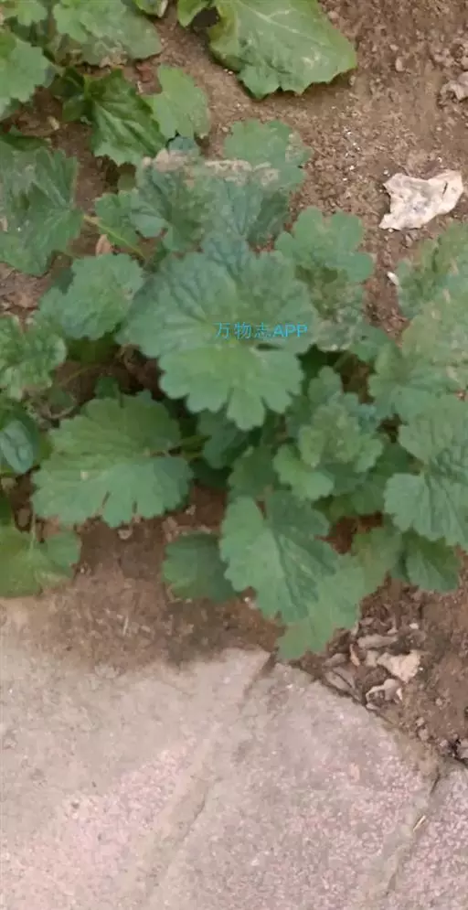 多年生草本,披散于地面或上升,具圆锥形的主根。茎高15-35厘米,四棱形,具沟槽,带紫红色,密被微柔毛,常在基部分枝。叶轮廓为圆形,长宽1.5-2厘米,先端圆形,基部心形,3深裂,裂片有圆齿或长圆形犬齿,有时叶片为卵圆形,3浅裂或深裂,裂片无齿或有稀疏圆齿,通常基部越冬叶远较宽大,叶片两面均绿色,上面疏生微柔毛,下面沿脉上被长柔毛,余部具腺点,边缘具纤毛,脉掌状,3-5出;叶柄长,基生叶的长2-3厘米,上部叶的较短,通常在1厘米左右,扁平,上面微具沟槽。