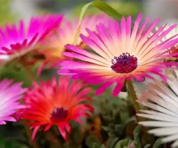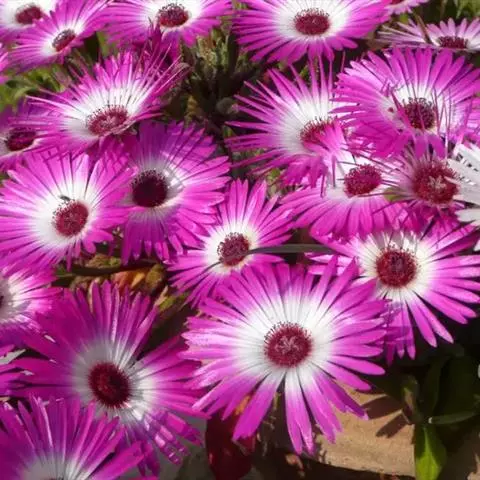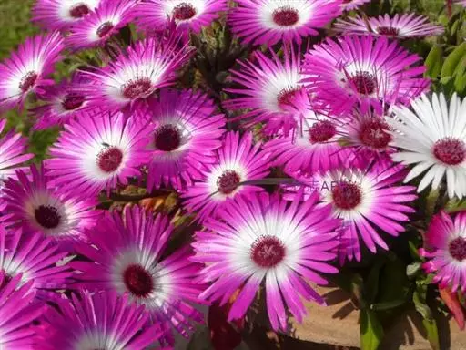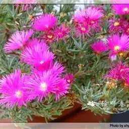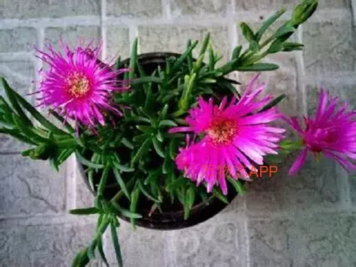 美丽日中花以观花为主。该种花大、色泽艳丽、繁茂,在匍匐平 伸的枝条衬托下,更显娇柔艳丽。常置放于室内,阳台,走廊盆栽或吊盆欣赏,为一种理想的盆栽多肉观花植物。
