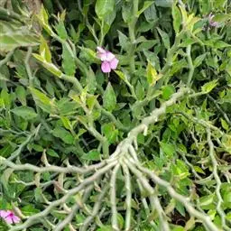 多年生常绿草本,高30 厘米。茎丛生,斜升,基部木质,多分枝。