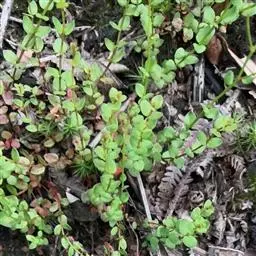 小二仙草,别名:船板草、豆瓣草、扁宿草、下风草、沙生草,拉丁文名:Haloragis micrantha (Thunb.) R. Br. 小二仙草科、小二仙草属多年生陆生草本; 茎直立或下部平卧,具纵槽,多分枝,多少粗糙,带赤褐色。叶对生,卵形或卵圆形,基部圆形,先端短尖或钝,边缘具稀疏锯齿,通常两面无毛,淡绿色,背面带紫褐色,具短柄;茎上部的叶有时互生,逐渐缩小而变为苞片。花序为顶生的圆锥花序,由纤细的总状花序组成;坚果近球形,小形,花期4-8月,果期5-10月。
