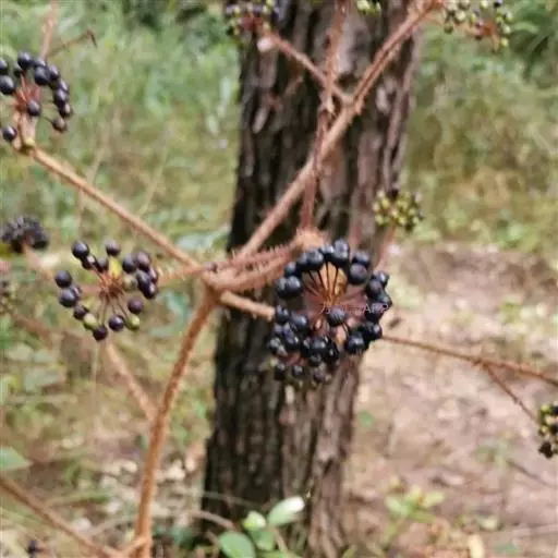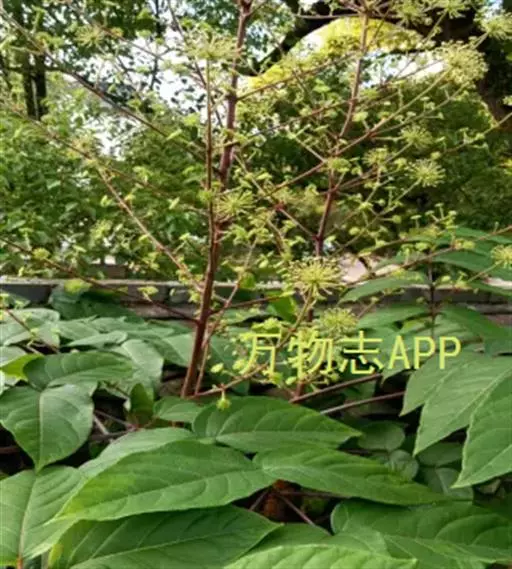 圆锥花序大,长30-60厘米;分枝长20-35厘米,密生淡黄棕色或灰色短柔毛;伞形花序直径1-1.5厘米,有花多数;总花梗长1-4厘米,密生短柔毛;苞片锥形,膜质,长3-4毫米,外面有毛;花梗长4-6毫米,密生短柔毛,稀为疏毛;花白色,芳香;萼无毛,长约1.5毫米,边缘有5个三角形小齿;花瓣5,卵状三角形,长1.5-2毫米;雄蕊5,花丝长约3毫米;子房5室;花柱5,离生或基部合生。果实球形,黑色,直径约3毫米,有5稜;宿存花柱长1.5毫米,离生或合生至中部;花期7-9月,果期9-12月。