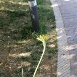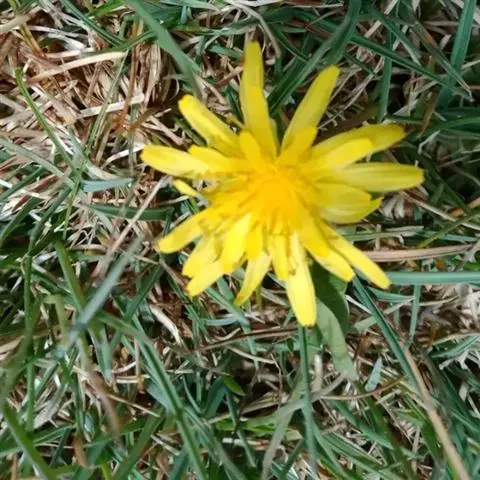 乍看起来,桃叶鸦葱的花部形态与蒲公英十分相似。二者都有着非常明显的顶生黄色头状花序,大小相仿。不同的是,前者小花的数量少而体积大,后者小花数量小、体积小。其次,前者头状花序总苞圆柱状,总苞片约5层;后者的总苞片通常仅内外两层。第三,前者的总花葶较粗壮,后者的花葶短而柔弱、中空。其实,前者的少而细长的叶片和后者短椭圆形的叶片形态差异很明显。除了叶片形态,果实形态上也有差异。虽然桃叶鸦葱果实顶端也有冠毛,像降落伞一样,但其多为苞片所包,很少像蒲公英那样完全开展。