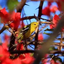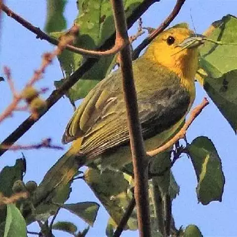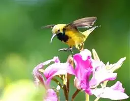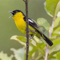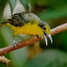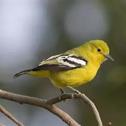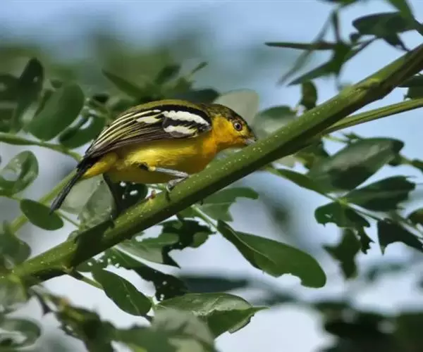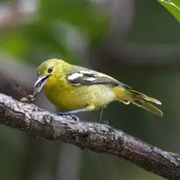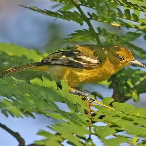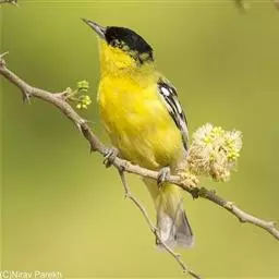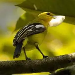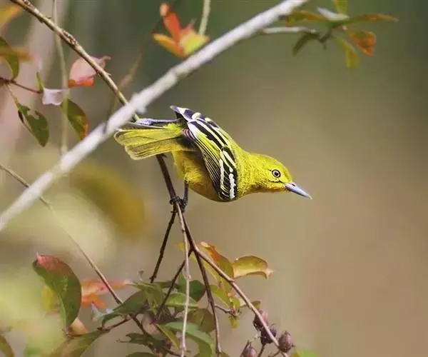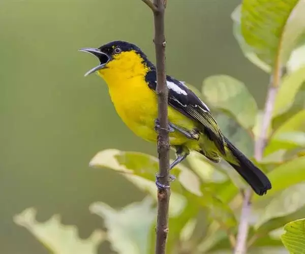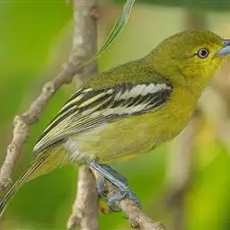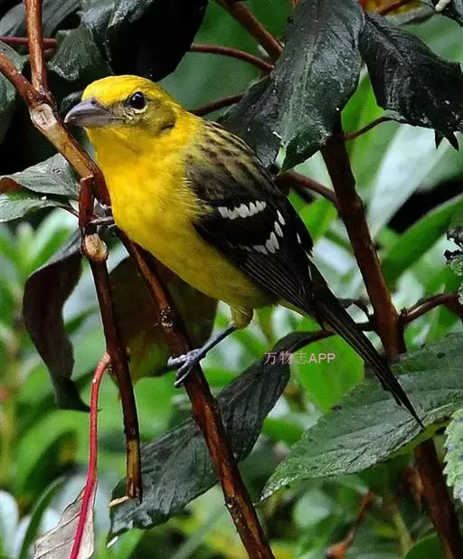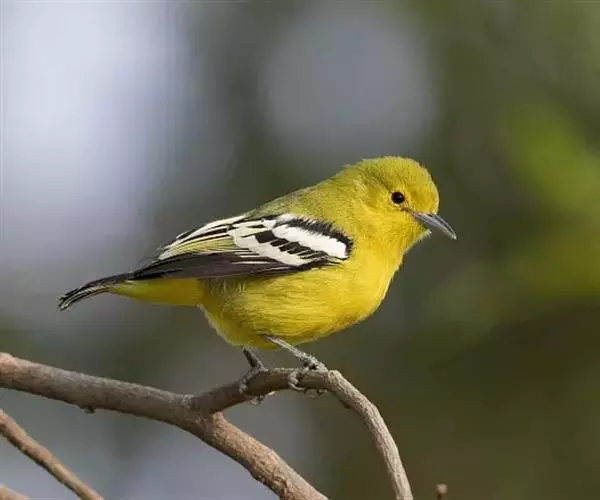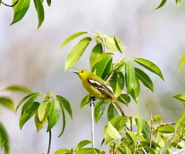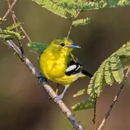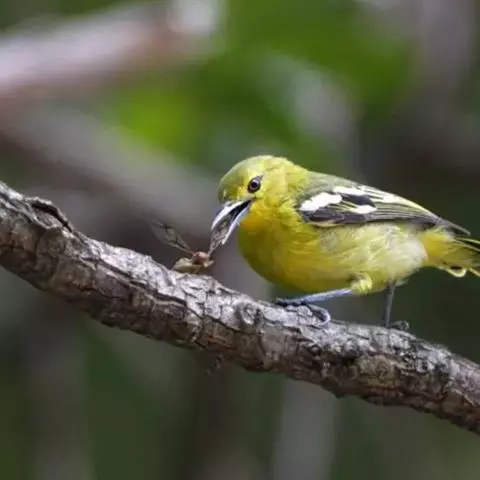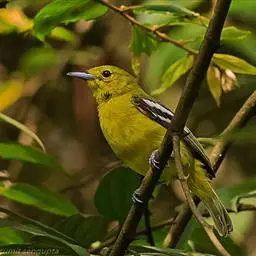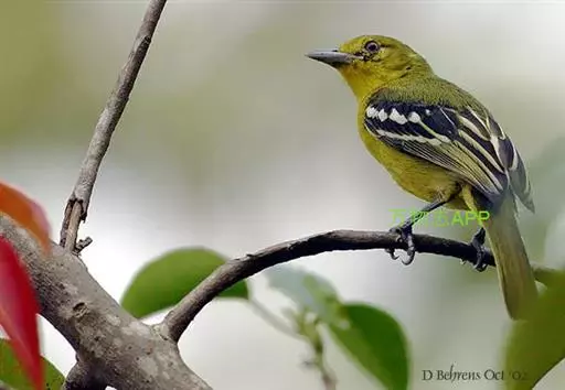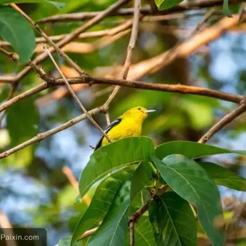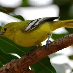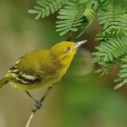 黑翅雀鹎(学名:Aegithina tiphia):体重14-19克,体长11.5-16厘米。是树栖性绿色小鸟,外形与叶鹎相似,下体黄色。鸟喙直,翼长而尖,总体羽毛是绿色和黄色相结合,翼上具两道明显近白色横纹,翼近黑而羽缘白。虹膜灰色、淡黄色或棕红色,嘴灰蓝色、银灰色或黑色,跗蹠灰色。