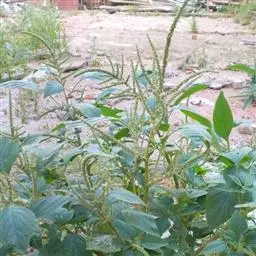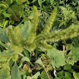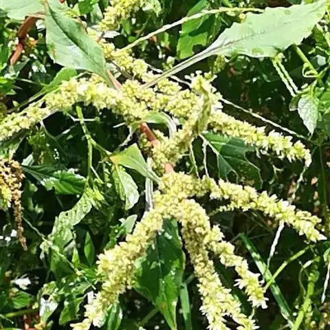 反枝苋是苋科苋属的一年生草本植物。株高达1米;茎密被柔毛;叶菱状卵形或椭圆状卵形,先端锐尖或尖凹,…