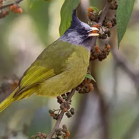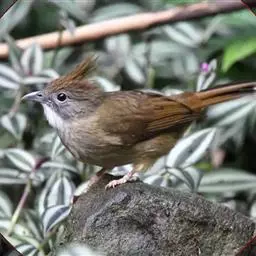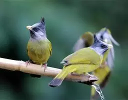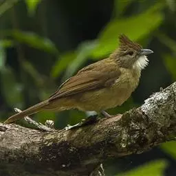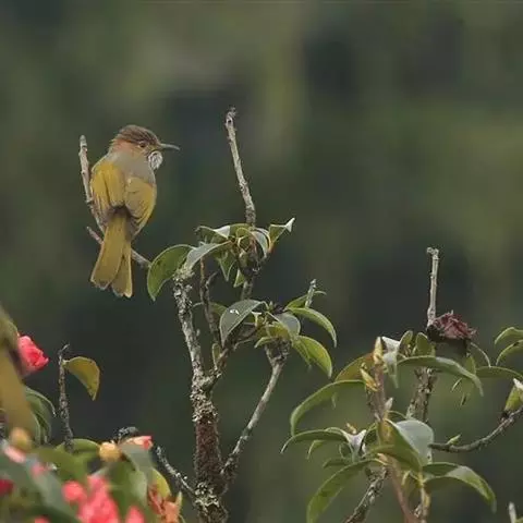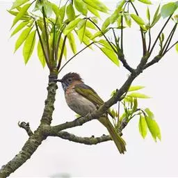 白喉冠鹎:体长20-25厘米。头顶红褐色,有长而细的羽冠、红褐色,头侧灰色。上体橄榄绿黄色,…