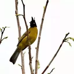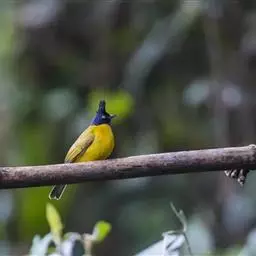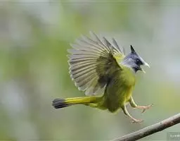 黑冠黄鹎:体长18-21厘米,是一种中等体型偏黄色鹎。整个头、颈、颏、喉黑色,头顶有显著直立的羽冠,…