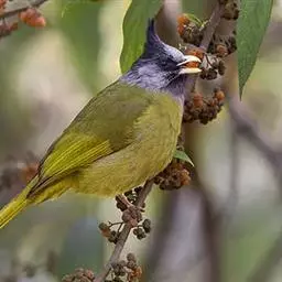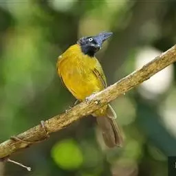 黑头鹎:体长17厘米。是一种中等体型的偏黄色鹎。特征为头辉黑、喉黑而眼蓝。上体黄橄榄色;两翼及尾偏黑,…