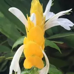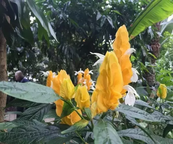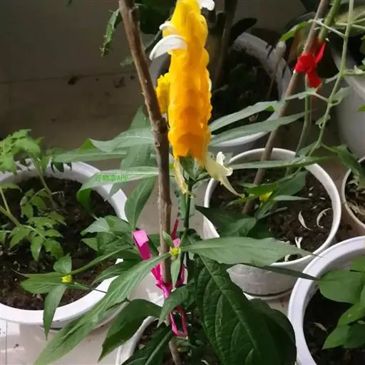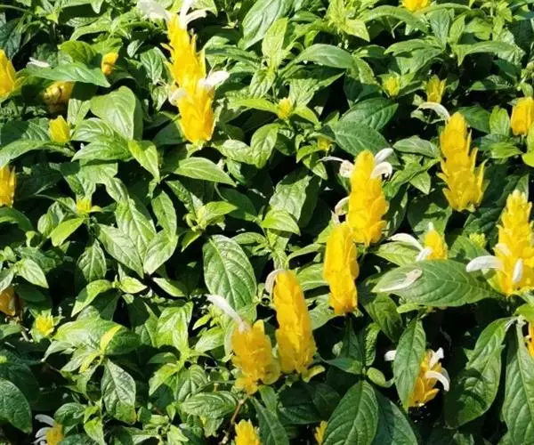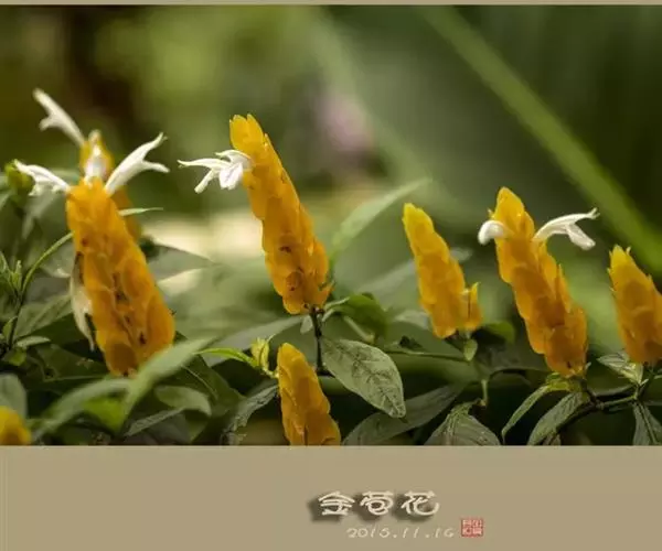 金苞花叶色亮绿,花序苞片排列紧密、黄色,花白色素雅,花型别致,整个花序形如金黄色的虾,花期长,观赏价值高。片植于花坛、花镜、公园入口等均能具有很好的观赏效果,盆栽用于布置室内客厅、书房、几案等处。 金苞花