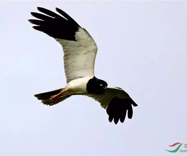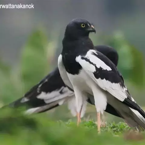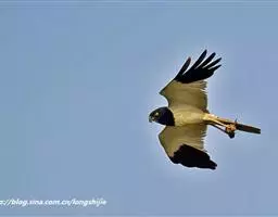 鹊鹞(学名:Circus melanoleucos):是一种中型猛禽。体重250-380克,体长42-48厘米。而两翼细长的鹞。体色比较独特,与其他鹞类不同,头部、颈部、背部和胸部均为黑色,尾上的覆羽为白色,尾羽为灰色,翅膀上有白斑,下胸部至尾下覆羽和腋羽为白色,站立时外形很像喜鹊,所以得名。虹膜黄色,嘴黑色或暗铅蓝灰色,下嘴基部黄绿色,蜡膜也为黄绿色,脚和趾黄色或橙黄色。