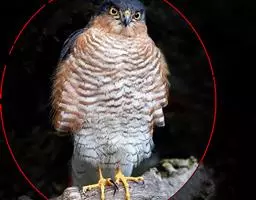 雌鸟上体暗褐色,头缀以棕白色羽缘,背和肩具窄的棕色羽缘;尾羽灰褐色,具黑褐色横斑;翅外侧飞羽暗褐色,具黑褐色斑纹和内翈基部白色,内侧飞羽灰褐色,具暗褐色横斑纹;初级覆羽灰褐色,其余覆羽褐色,具棕色端缘。下体污白色,具黑褐色纵纹。