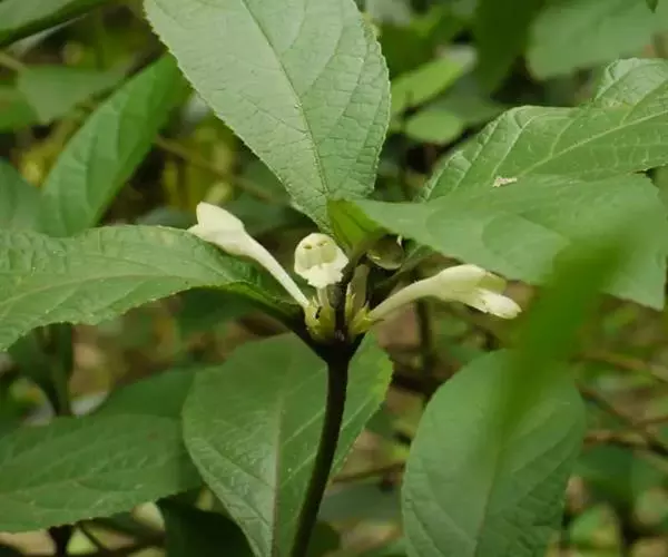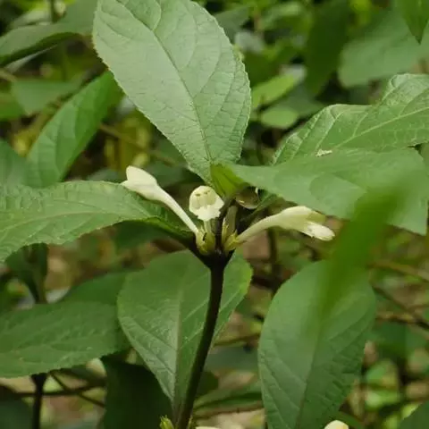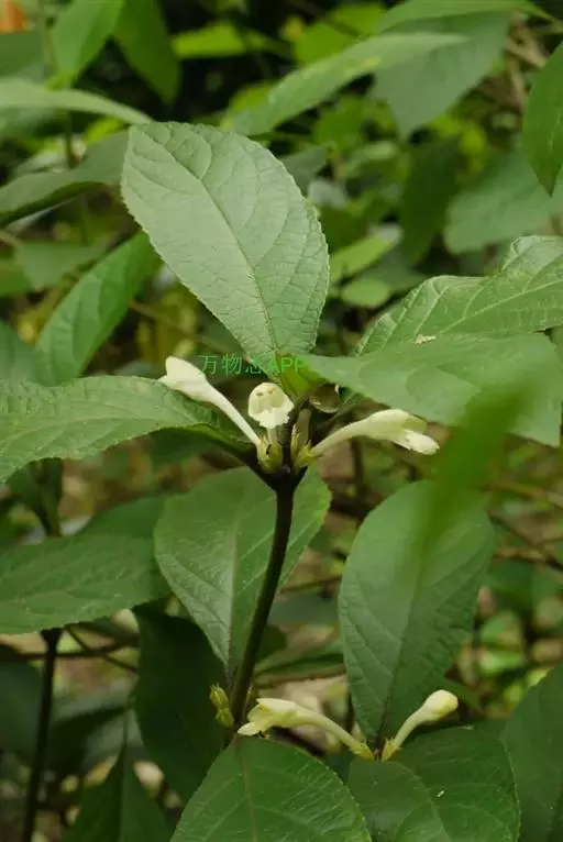 花冠白色至浅黄色,长约3.5厘米,外面被微柔毛,内面在冠筒有尘状毛被,冠筒基部宽约2毫米,自1/2以上扩展,至喉部宽约10毫米,冠檐二唇形,上唇直立,圆形,长6.5毫米,宽7.5毫米,下唇长约10毫米,3裂,中裂片圆形,径约5毫米,侧裂片长4.5毫米,宽6.5毫米。雄蕊与上唇等长,花丝扁平,边缘膜质,有微毛。花柱纤细,先端不相等2浅裂,基部与子房连着处有纤毛。花盘杯形,微斜。