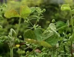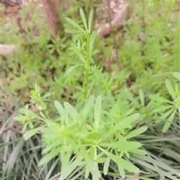 六叶葎 Ehrend. & Schönb.-Tem. ex R. R. Mill)是茜草科拉拉藤属的一年生草本。常直立,有时披散状,高10-60厘米左右,近基部分枝,有红色丝状的根;茎直立,具疏短毛或无毛;叶片薄,纸质或膜质,长圆状倒卵形、倒披针形、卵形或椭圆形顶端钝圆而具凸尖;聚伞花序顶生和生于上部叶腋,苞片常成对披针形,花冠白色或黄绿色,裂片卵形,雄蕊伸出;果近球形,单生或双生,密被钩毛;花期4-8月;果期5-9月。六叶葎分布于中国北、山西、陕西、甘肃、江苏、安徽、浙江、江西、河南、湖北等地,印度、巴基斯坦、尼泊尔、锡金、不丹、缅甸、日本、朝鲜、俄罗斯均有栽培。生于海拔920-3800米的山坡、沟边、河滩、草地的草丛或灌丛中及林下。六叶葎味甘,性平,具有清热解毒、利尿消肿的功效,可用于治疗尿路感染、赤白带下、痢疾、痛肿、跌打