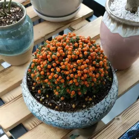 果近球形,直径约3.5毫米,成熟时由黄绿色变白色,无毛,宿存萼片5(偶有4?),狭披针形,长达10毫米。花期夏季。