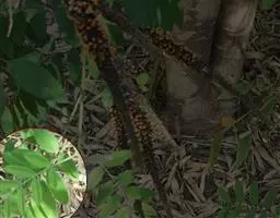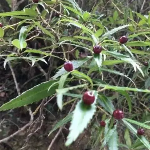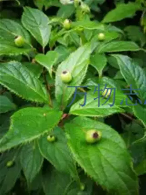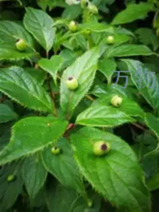 常绿小乔木或灌木,高3一4(一8)米。幼枝绿色,粗壮。叶革质,倒卵状长圆形、长圆形,稀倒披针形,长915厘米,宽3一5厘米,先端急尖或渐尖,具1 -1,5厘米尖尾,基部楔形,边缘除近基部1/3处全缘外,其余均具腺状锯齿,叶上面深绿色,干后呈橄榄色,背面淡绿色,干后有淡黄褐色斑纹,侧脉在幼叶上微显著,在老叶上面不显著,老叶背面微显著;叶柄长1一5厘米;托叶2片,线状披针形或钻形。雄花多数簇生,常5 -20(一30)枚,呈密伞花序,生于叶上面主脉的1/4-1/3处(稀生于近叶柄处),或生于幼枝上,雄花紫绿色,小花梗长3一7毫米,雌花1一4(一6)枚,呈伞形花序,小花梗长2一4毫米,花绿色,柱头3一4(一5)裂,子房3一4(一5)室。浆果状核果,成熟后黑色。种子3一4(一5)粒,椭圆形,长约9毫米。花期3一4月,果期7一8月。