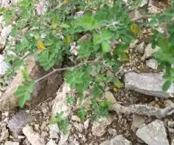 直立灌木,高40-100厘米。茎褐色,圆柱形,有皮孔,枝银灰色,被灰白色丁字毛。羽状复叶长2.5-5厘米;叶柄长达1厘米,叶轴上面有槽,与叶柄均被灰色平贴丁字毛;托叶三角形,长约1毫米,早落;小叶2-4对,对生,椭圆形,稍倒阔卵形,长5-1.5毫米,宽3-10毫米,先端钝圆,基部圆形,上面绿色,疏被丁字毛,下面苍绿色,丁字毛较粗;小叶柄长0.5毫米;小托叶与小叶柄近等长或不明显。
