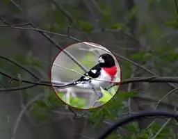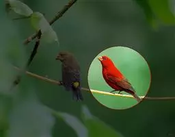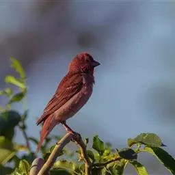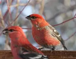 长尾朱雀:体长18厘米,体重16-26克。雄鸟额、颏和眼后为暗红色,…
