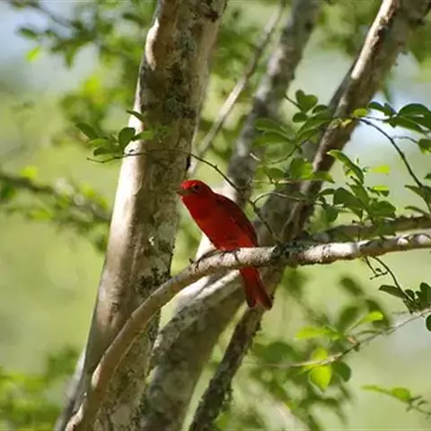 酒红朱雀小型鸟类,体长13~15厘米。雄鸟通体深红色,头部深朱红或棕红色,下背和腰玫瑰红色,…