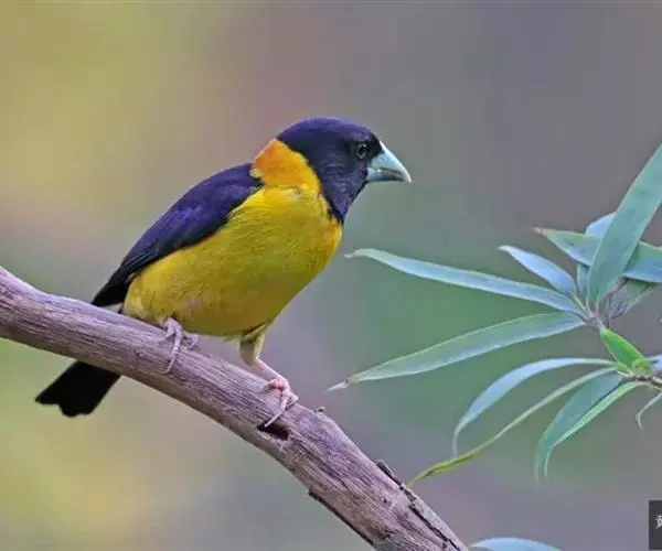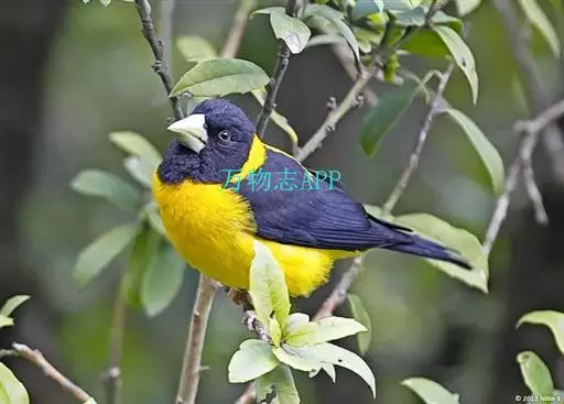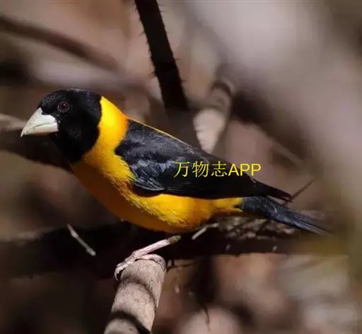 黄颈拟蜡嘴雀:小型鸟类,体长20-22厘米。嘴粗大,黑色。雄鸟整个头、颈、颏、喉和上胸辉黑色,…