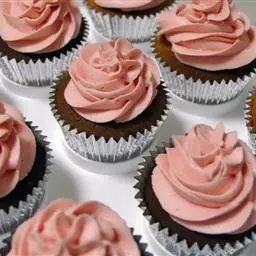 2.取30个蛋糕模(铁皮圆模或花模均可),抹油或垫油纸,然后将蛋糕糊分别倒在模子内上笼蒸约5分钟左右即熟,下笼磕出,中心点一红点即成。