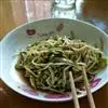 炸酱面 5.最后把绿豆芽和黄瓜丝夹到面条上再盛入1勺炒好的炸酱大蒜末,再倒少许醋拌匀即可。