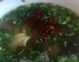材料:北方拉面(250克)、猪绞肉(250克)、卤豆干(4块)、青瓜(半根)、鸡蛋(1只)、毛豆仁(100克)、红葱头(3粒)