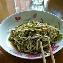 4.绿豆芽在热水中要尽快捞出。防止颜色变重!