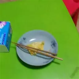 3.将鸡蛋放入锅中,用筷子顺时针搅拌,油最好没过鸡蛋,由于搅拌鸡蛋形成细小的颗粒,搅动得越快鸡蛋颗粒越小。