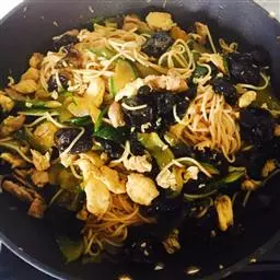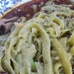 【材料】:宽面条200克,猪肉馅150克,豆腐干20克,虾米20克,黄瓜20克,香菇10克,大蒜2瓣。