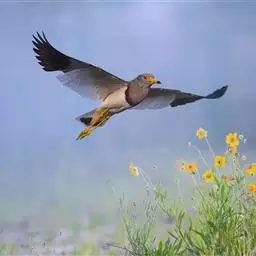 灰头麦鸡是鸻形目鸻科麦鸡属鸟类,繁殖期头、颈及胸灰色;胸部和腹部之间有黑色胸带分隔;背部及两翼大部分覆羽褐色;腹部和腰部白色;尾羽基部及边缘白色,近末端有黑色斑块。非繁殖期头颈部染褐色,颏及喉部白色,胸带不明显。初级飞羽黑色,其余飞羽及与之相邻的部分覆羽白色;虹膜红褐色,眼圈黄色;嘴尖段黑色,后段黄色;腿和脚黄色。灰头麦鸡分布于欧亚大陆及非洲北部、中南半岛以及太平洋诸岛屿,在中国分布于东南沿海地区。栖息于丘陵、平原地区河流、湖泊和沼泽等水体附近。繁殖期成对活动,其余时间集群活动。主要啄食甲虫、蝗虫、蚱蜢等昆虫,也吃水蛭、螺、蚯蚓、软体动物和植物叶片及种子。繁殖期为5—7月,1年繁殖1窝,每窝产卵4枚。灰头麦鸡被列入中国国家林业局发布的《国家保护的有益的或者有重要经济、科学研究价值的陆生野生动物名录》。