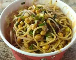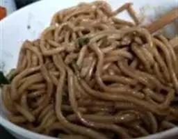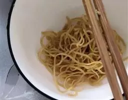 4.将面下入沸入锅后,不要搅动,当其从锅底自然漂起后,捞出在凉开水冲刷一下,再入锅复烫即捞出。