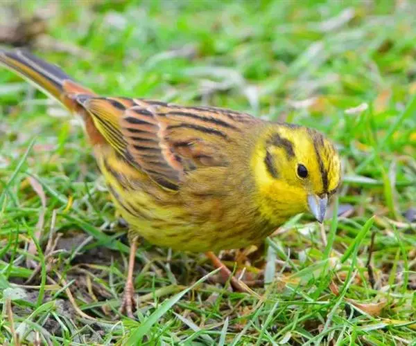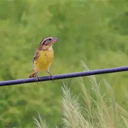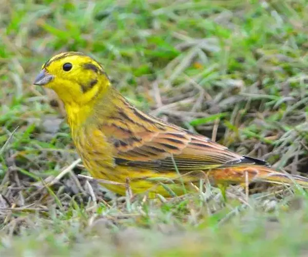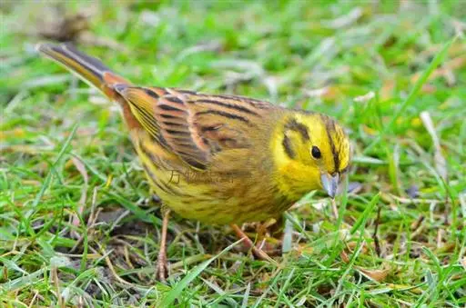 黄鹀(学名:Emberiza citrinella):属小型鸣禽。体重26.5-34克,体长160-200毫米。体羽似麻雀,头上、眉纹、眼后纹和颊部黄色;背栗灰,腰和尾上覆羽栗色;翼和尾羽暗褐,外侧两枚尾羽外翈具大型白斑;颏、喉、胸和腹鲜黄,体侧有锈栗色纵纹。喙为圆锥形,与雀科的鸟类相比较为细弱,上下喙边缘不紧密切合而微向内弯,因而切合线中略有缝隙。