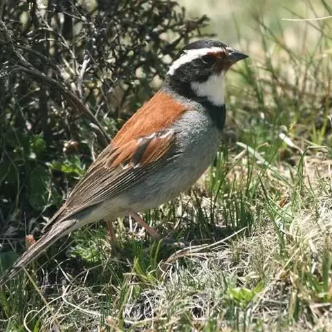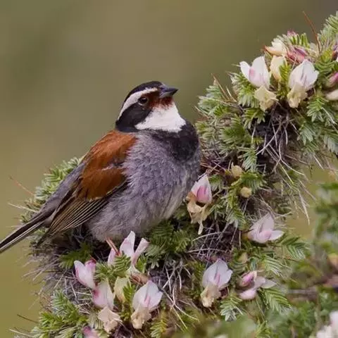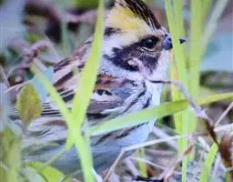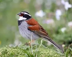 栗斑腹鹀:属小型鸣禽。体重19-25克,体长145-167毫米。头顶至背栗红色,眼先和颧纹黑褐色,…