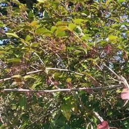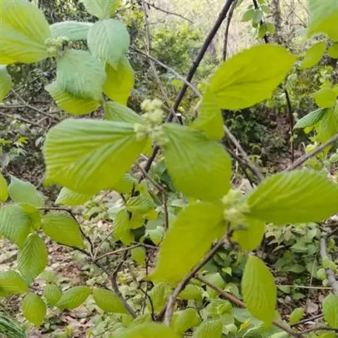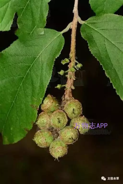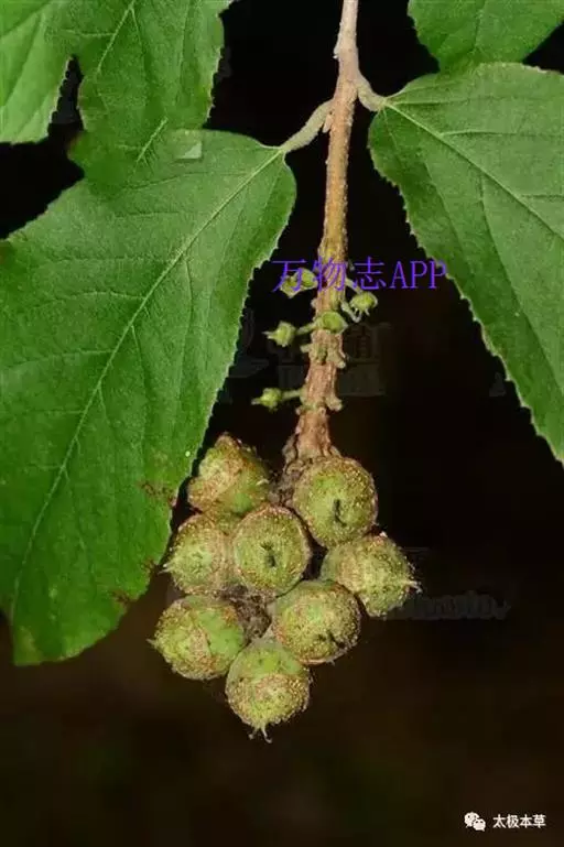 牛鼻栓又名连合子、木里仙。落叶小乔木或灌木,高2-5m。嫩枝有灰褐色柔毛;老枝有稀疏皮孔。单叶互生;叶柄长4-10mm;托叶早落;叶片膜质,倒卵形或倒卵状椭圆形,长5-16cm,宽3-9cm,先端渐尖,基部圆形或钝,稍偏斜,缘具波状锯齿;叶脉深入齿端小尖头,沿主脉和下面有星状毛。花杂性,两性花和雄花同长于一植株上;雄花序呈短葇荑状,有发育不全的雌蕊;两性花的花序长3-6cm;苞片及小苞片披针形,有星状毛;萼筒长1mm,无毛,萼齿5,卵形,长1.5mm,先端有毛;花瓣5,钻形,较萼片稍短;雄蕊5,花药卵形,长约1mm;子房半下位,2室,花柱2,向外卷曲。蒴果木质,卵圆形,长1.5cm,有白色皮孔,沿室间2片开裂,每片2浅裂。种子卵圆形,长约1cm,暗棕色,有光泽。花期4-5月,果期7-8月。