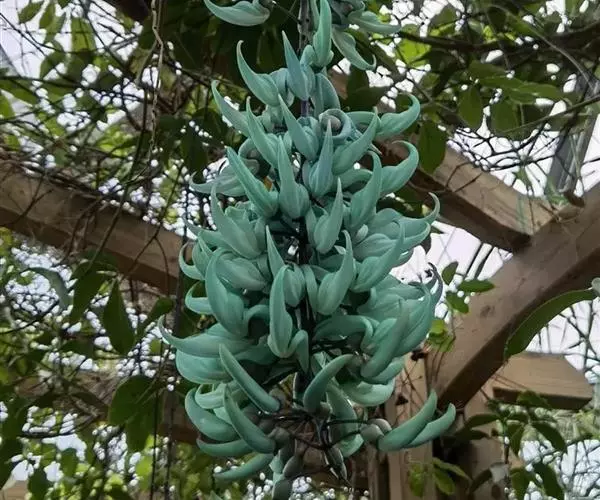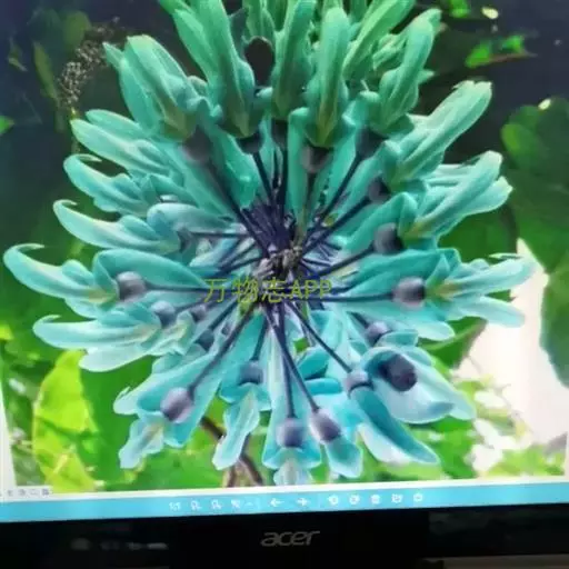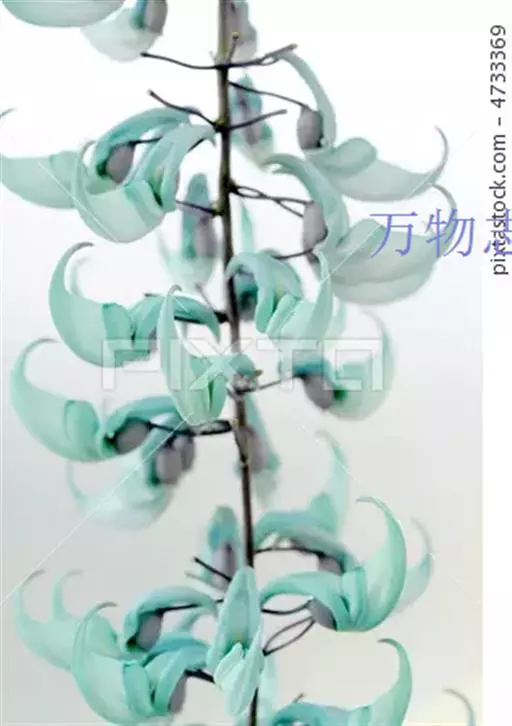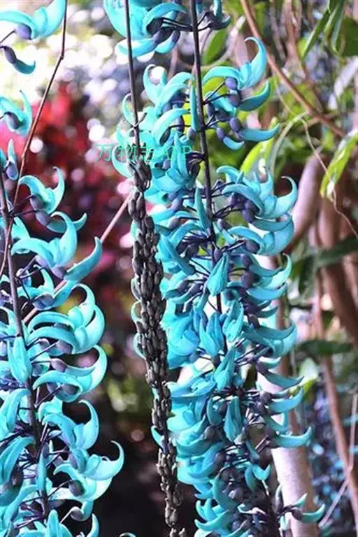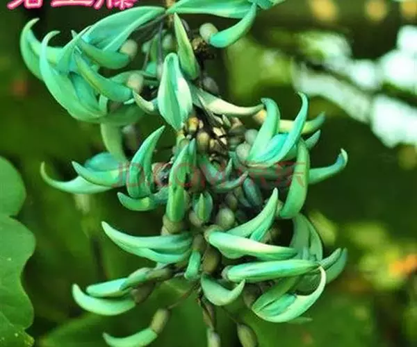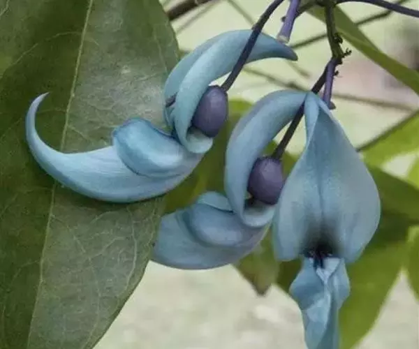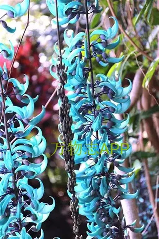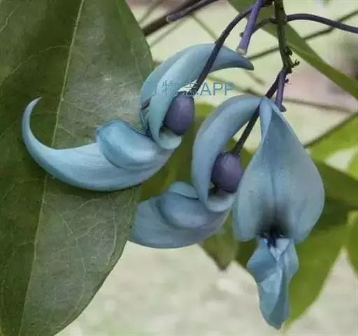 花两性,春季至初夏开花,蓝绿色,形似鸟爪,多朵小花成簇聚集在一起,组成长达90-150厘米或更长的下垂的总状花序,极为壮观。它的花是很独特的蓝绿色,这在植物界几乎是独一无二的,花悬挂于茂密的叶丛中,看上去就像发出冷光一样,极其迷人。非常漂亮。