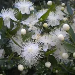 香桃木是桃金娘科香桃木属植物。枝四棱,幼嫩部分稍被腺毛;叶芳香,革质,叶片卵形至披针形;花芳香,…
