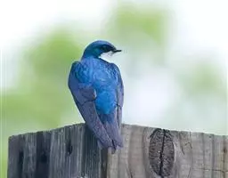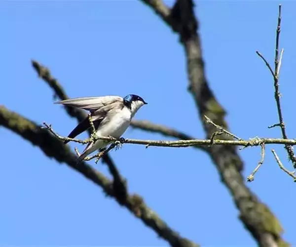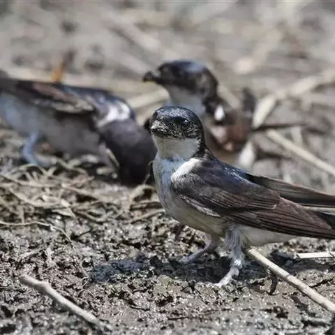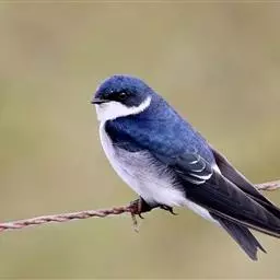 线尾燕,腹部接近纯白色,背部则为深紫色,头部的羽毛是栗色的。