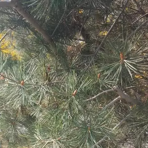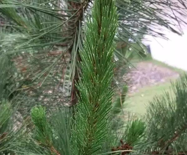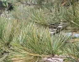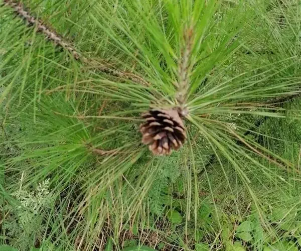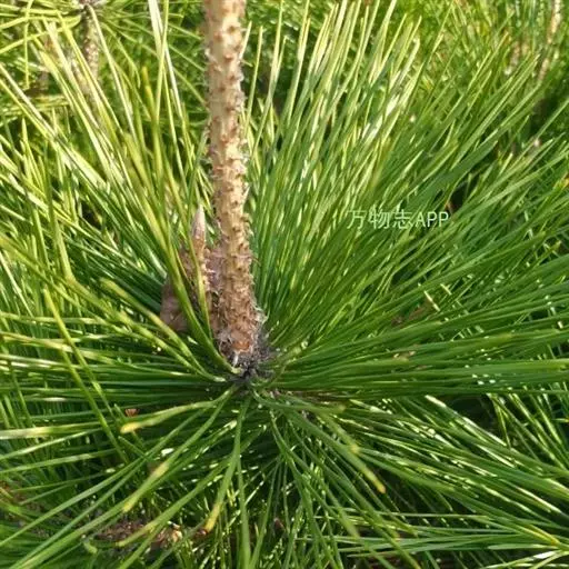 针叶2针一束,稀3针一束,长12-20厘米,细柔,微扭曲,两面有气孔线,边缘有细锯齿;横切面皮下层细胞单型,第一层连续排列,第二层由个别细胞断续排列而成,树脂道约4-8个,在背面边生,或腹面也有2个边生;叶鞘初呈褐色,后渐变成灰黑色,宿存。