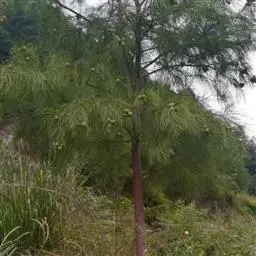 乔木,高达45米,胸径1.5米;树皮红褐色,下部灰褐色,裂成不规则的鳞状块片;枝平展或斜展,树冠宽塔形或伞形,枝条每年生长一轮,但在广东南部则通常生长两轮,淡黄褐色,无白粉,稀有白粉,无毛;冬芽卵状圆柱形或圆柱形,褐色,顶端尖,芽鳞边缘丝状,先端尖或成渐尖的长尖头,微反曲。