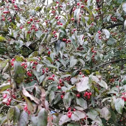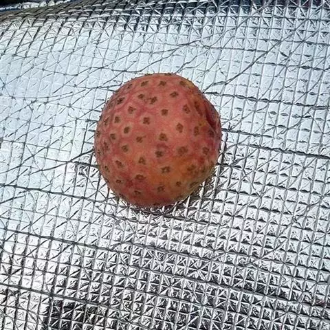 果序球形,直径2.5厘米,成熟时红色,被白色细伏毛;总果梗纤细,长6-10.5厘米,紫绿色,微被毛。花期6-7月;果期 10-11月。