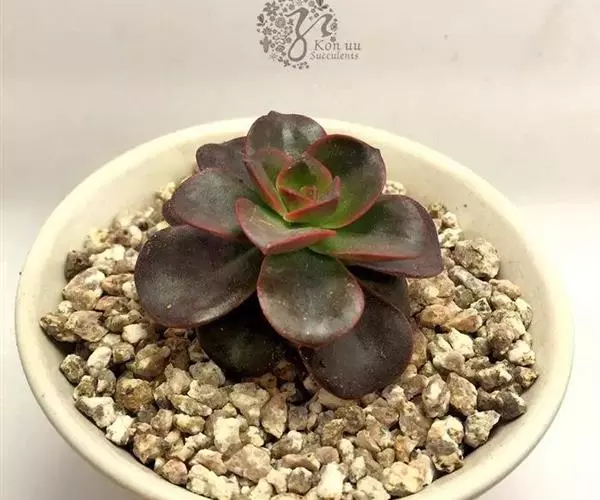 巧克力方砖为景天科拟石莲花属多肉植物,输中小型品种。植株肉质叶排成松散的莲座状。褐红色的叶片向内凹陷有明显的波折,叶缘有轻微米黄色边,强光下或者温差大,叶片会出现漂亮的紫褐色,如巧克力颜色。弱光则叶色浅褐绿,叶片拉长。植株叶面光滑,不容易积水。叶片无白粉,巧克力方砖需要接受充足日照叶色才会艳丽,株型才会相对紧凑美观,多年群生后,植株会非常壮观,特别是多年修剪过的老桩。巧克力方砖簇状花序,和大多数的石莲花一样的花型。