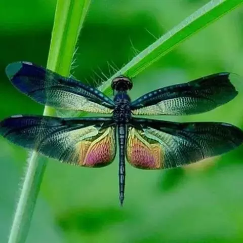 黑丽翅蜻属蜻科,是一类很原始的昆虫,河南、山东、安徽、江苏、福建、浙江、广东、广西等均有分布。面色浓,具毛,除前唇基色稍淡外,其余部分及头顶全为具金属光泽的蓝绿色或蓝褐色。后头褐色,后缘具毛。前胸黑色。合胸脊前方蓝绿色,具浓毛,合胸侧面墨绿色,具稀疏的毛。翅的大部分黑色,具蓝绿色闪光,小部分透明。后翅黑色;前翅由翅基到翅结、肘脉末端这一区域黑色,翅末端具1个小黑斑,剩余部分透明无色。足黑色。腹部及肛附器皆黑色 。