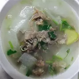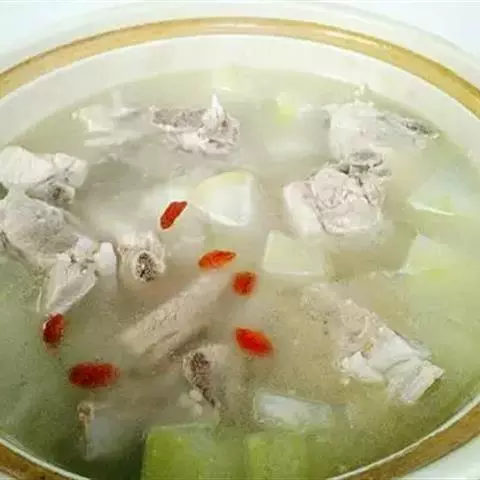 原料:冬瓜100克,瘦羊肉80克,枸杞3克,生姜10克,葱10克。