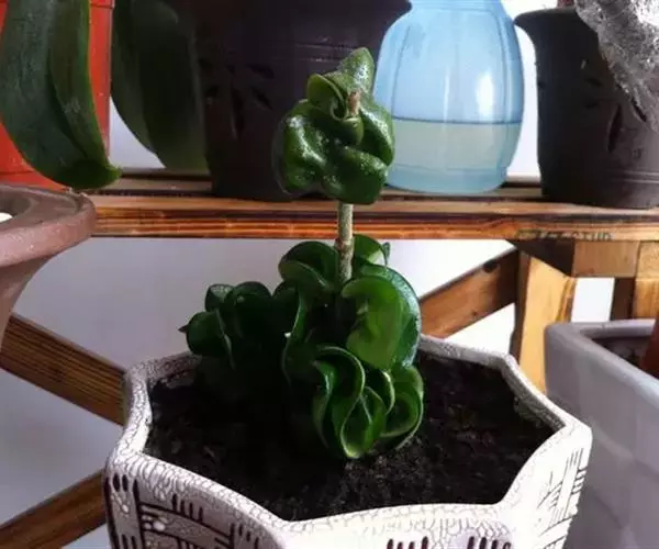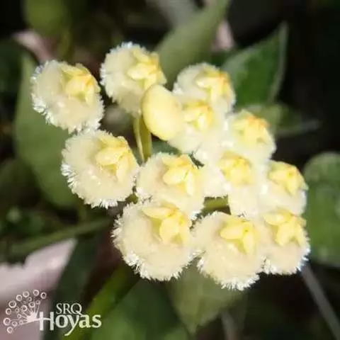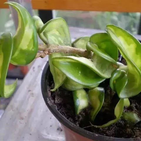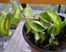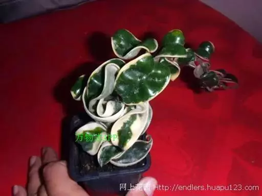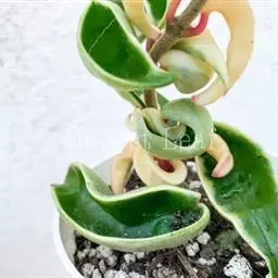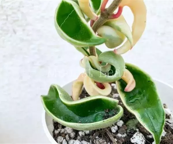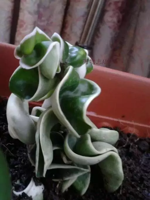 卷叶球兰为常绿攀援灌木,节间具气生根,附着他物攀爬。叶对生,革质,翻转扭曲,顶端锐尖,基部略凹。伞形花序,小花呈星形簇生,具芳香,花期在秋季。性喜温暖及潮湿,栽培土质以腐植质壤土为佳,排水需良好。春、秋季节,宜放在室外朝南窗台上或室内南窗附近培养,可保持叶色翠绿光亮,开花良好;夏季,需移至遮荫处,防止强光直射,否则叶色易变黄。若长期将其放在光线不足处,则叶色变淡,花少而不艳。