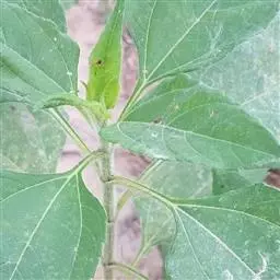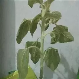 (5)向日葵缺硫:叶和花序色淡,节间较短,植株矮小;