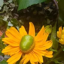 “阳光光束”金黄色的花,绿色的蕊。