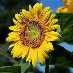 向日葵的叶分为子叶和真叶。子叶一对。真叶在茎下部1~3节常为对生,以上则为互生。真叶比较大,叶面和叶柄上着生短而硬的刚毛,并覆有一层蜡质层。叶片数目因品种不同而异,早熟种一般为25~32片,晚熟种为33~40片。茎下部叶片在开花前制造养分,主要供给根部生长,到开花时其功能基本结束。中上部叶片制造的养分主要供给花盘促使种子形成。
