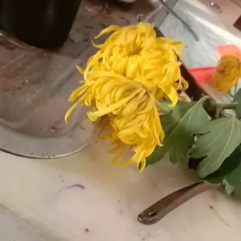 当外层的舌状花开放时即可采收。在水中或保鲜液中瓶插寿命夏季为6~8天,冬季可达10~15天。一般在采收包装中把叶片去掉,留顶部1片叶为宜。切花可在2℃~5℃下贮藏1周左右。 根据不同品种的特性,选择不同的收获方法: