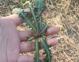5.药剂防治。用0.2%的2,4-D丁脂水溶液,喷洒于列当植株和土壤表面,每667平方米用药液300~350升,8~12天后可杀列当80%左右。当向日葵花盘直径普遍超过10厘米时,才能田间喷药,否则易发生药害。在向日葵和豆类间作地不能施药,因豆类易受药害死亡。另外,在播种前至出苗前喷氟乐灵10000倍液于表土,或在列当盛花期之前,用10%硝氨水灌根,每株150毫升左右,9日后即死亡。